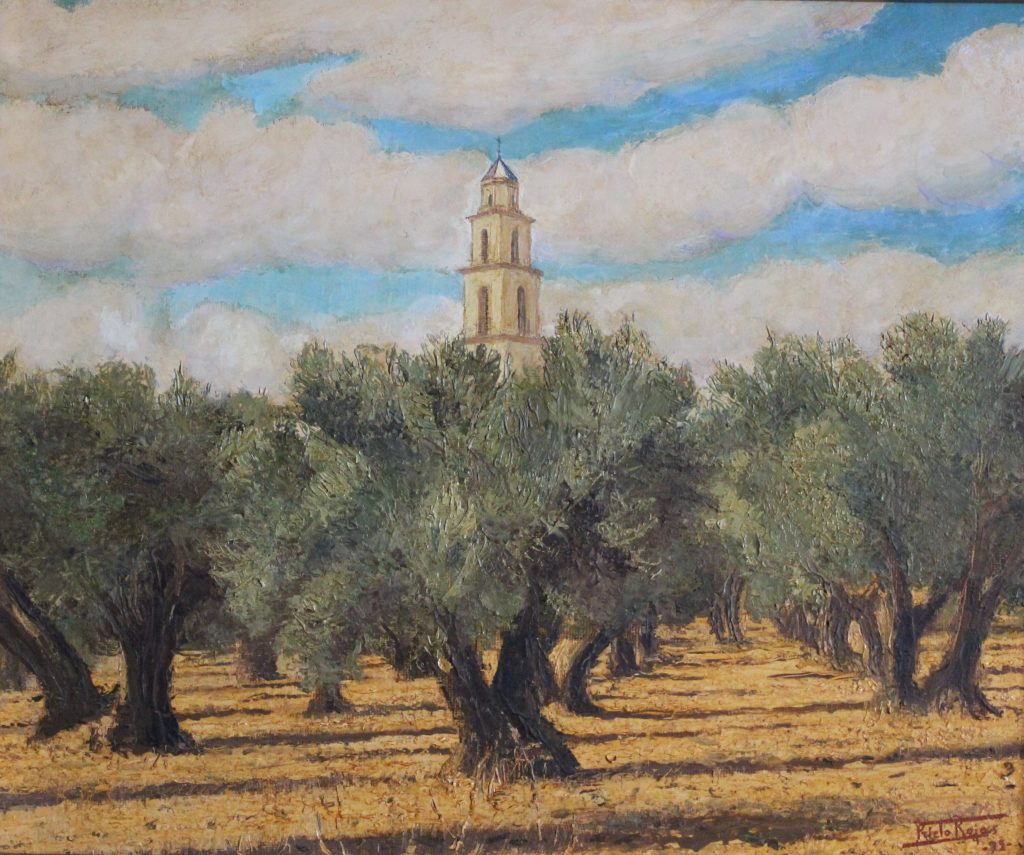 Y por supuesto, como no podía faltar, un cuadro que representa una de las vistas de la torre de la Ermita de Nuestro Santísimo Cristo desde un olivar.