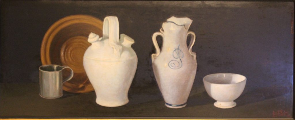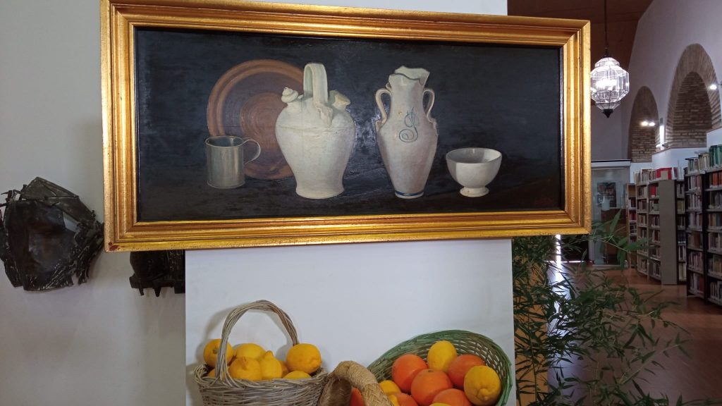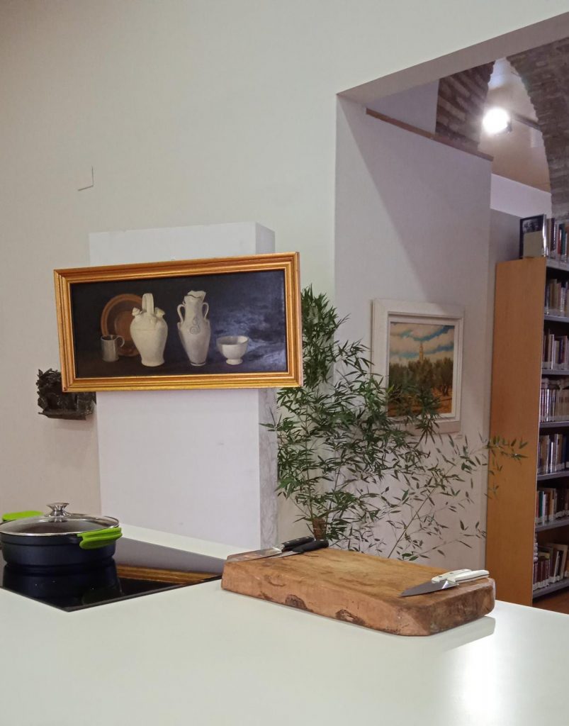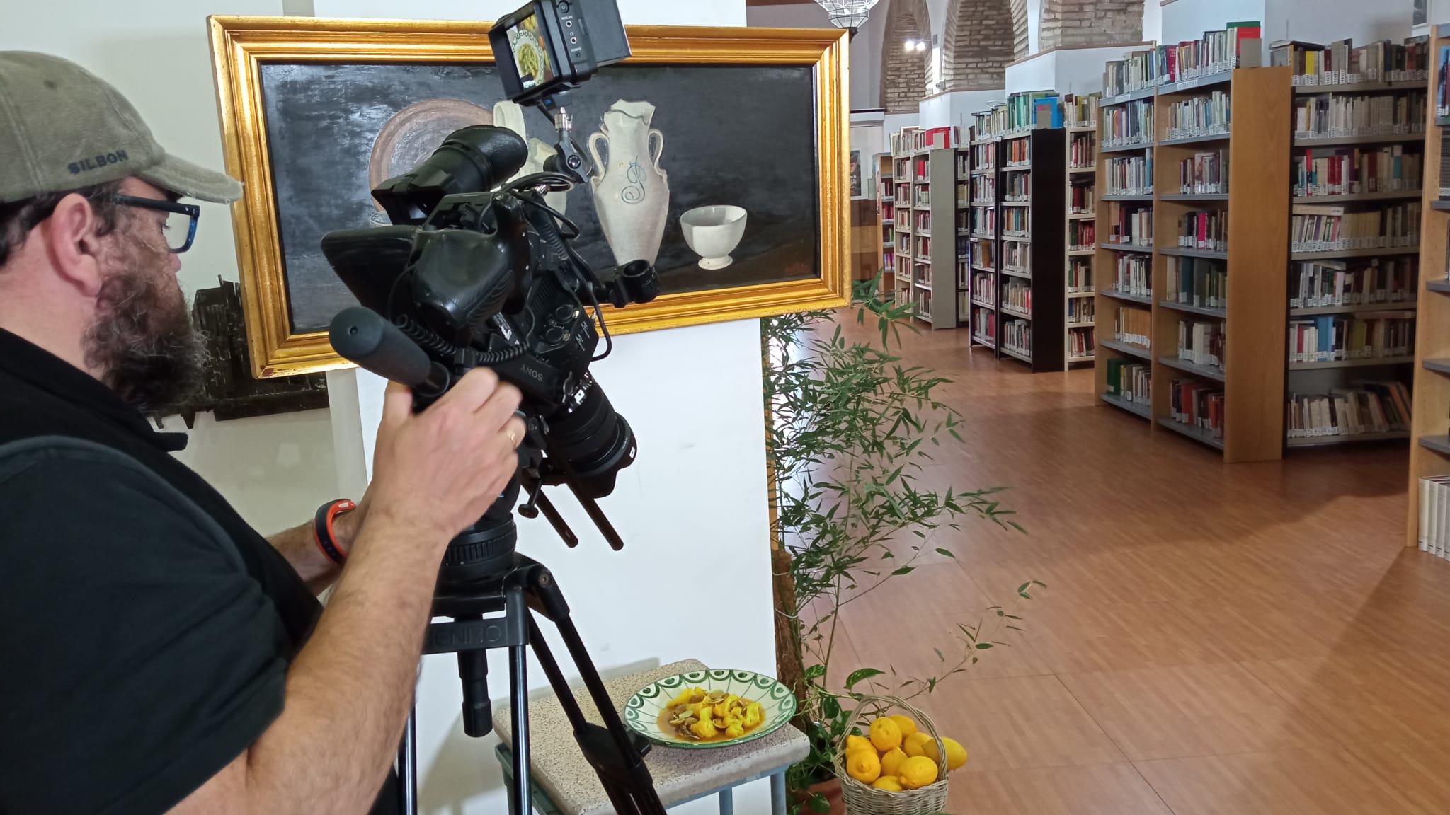 Durante la grabación de la elaboración de los platos típicos podemos visionar dos de los cuadros realizados por nuestro artista, el primero alegórico a lo que se estaba realizando, es decir, un bodegón,